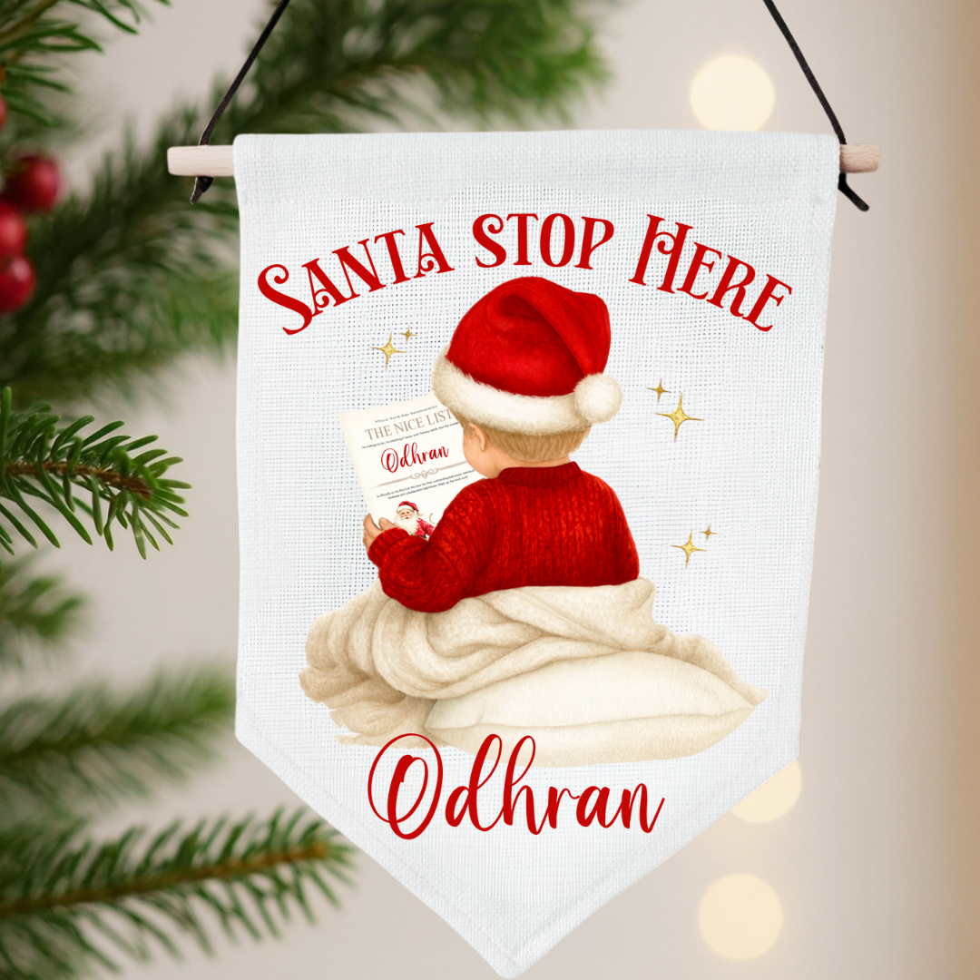 Personalised Santa Stop Here Pennant - Nice List Boy