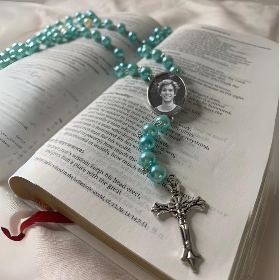 Cherish your faith and memories with our beautiful photo Rosary beads, available in a range of meaningful colours. Whether honouring a loved one, celebrating a Holy Communion, or marking a Christening, these carefully crafted beads offer a personal touch to a cherished tradition. Featuring a special photo, they serve as a heartfelt keepsake—a gentle reminder of love, faith, and connection. Thoughtful, timeless, and deeply personal, they make a wonderful gift for any occasion.